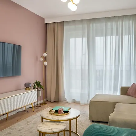Oaspeții sunt invitați să se bucure de un balcon și o zonă de relaxare dotată cu feronerie fonoizolantă, precum și de conforturi precum aer condiționat. Apartamentul Cityscape Blush Pink, Cozy Modern Apt este de asemenea mobilat cu un set de canapele și un birou. Baile oferă un grup sanitar separat și o cadă. În plus, veți găsi un uscător de păr și prosoape de baie.